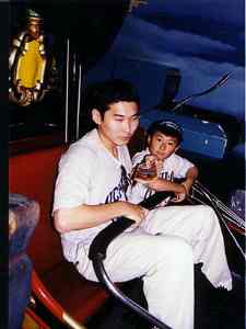 I'm wearing a Michigan shirt, my brother's wearing a Michigan shirt and my Mom's wearing those huge red sunglasses. Hmm...I wonder where we're from...